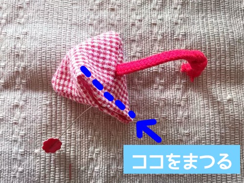 (ポイント)ヒモは取れない様にしっかり縫い付けましょう