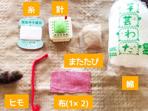 1.材料は最低これだけ!布、針、糸、綿