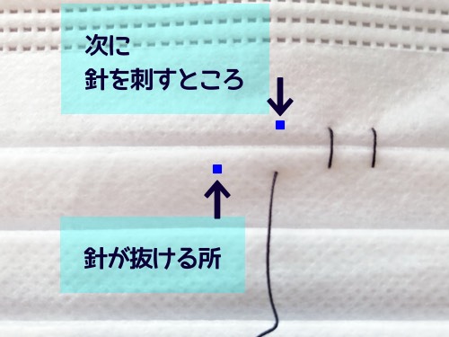 青い部分を細かくなみ縫いにします。